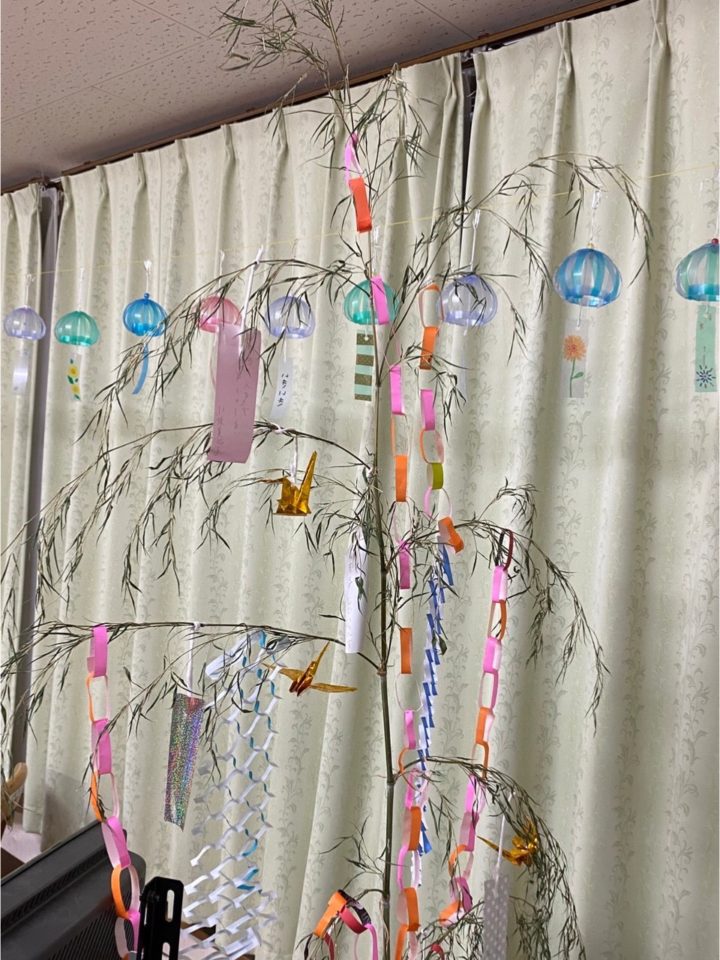 それでも季節の移り変わりを少しでも感じて頂こうと晴れ間を見つけては外に出かけ、屋内では風鈴作りをしたり七夕飾りを作ったりして過ごしました。