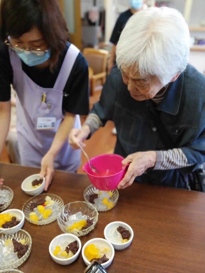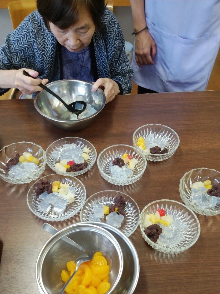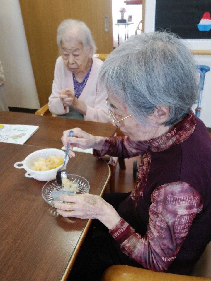 あんみつアイスを作ったり、カルピスゼリーを作ったり、スイカを食べたりと、夏らしいオヤツが続いた1週間で、室内で過ごす時間が多いからこそ、あの手この手で季節を感じていただいています。