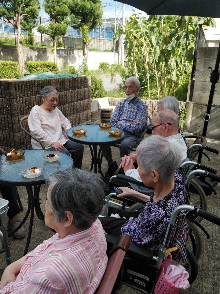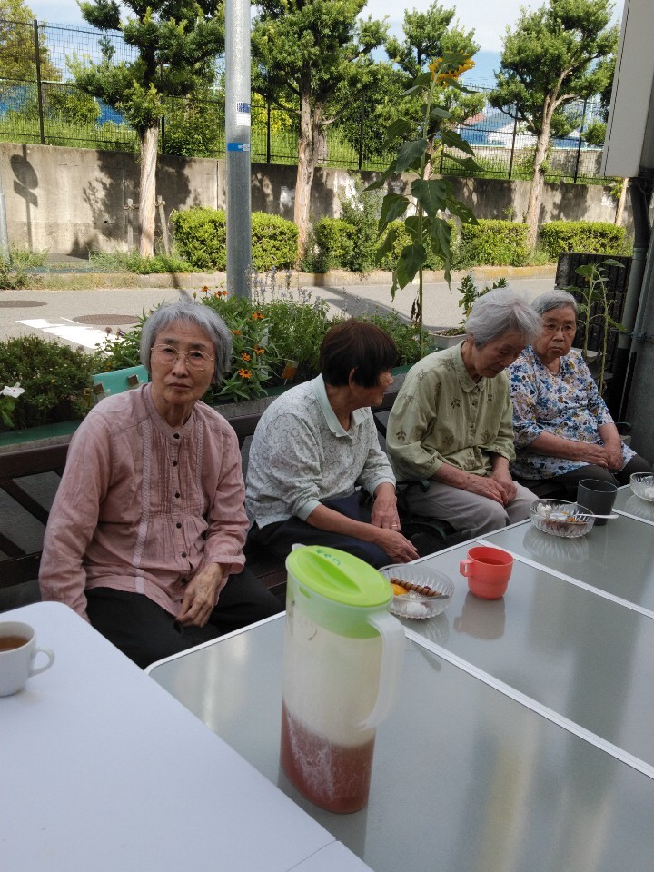 久しぶりの外でのおやつタイムに皆さんご満悦のご様子。