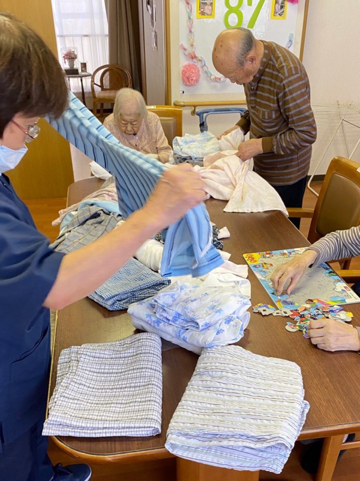 お茶パック作りに、食器拭き、洗濯物干しと皆さん今週も元気に過ごされました。