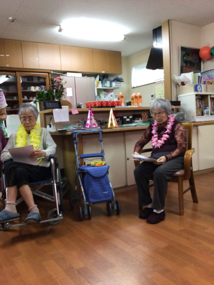 生ギターでの合唱やフラダンス、チョコレートケーキでお祝いしました。
