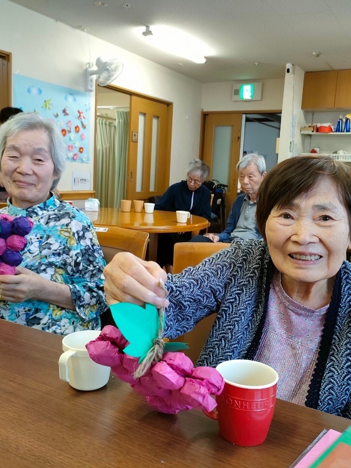 公園に散歩に行ったり、歌を歌ったり、飾り付け作りをしたり、お手玉遊びをしたり、屋外での活動時間が増えてきたという事もあってか、皆さんいつ以上にいきいきと過ごしておられました。