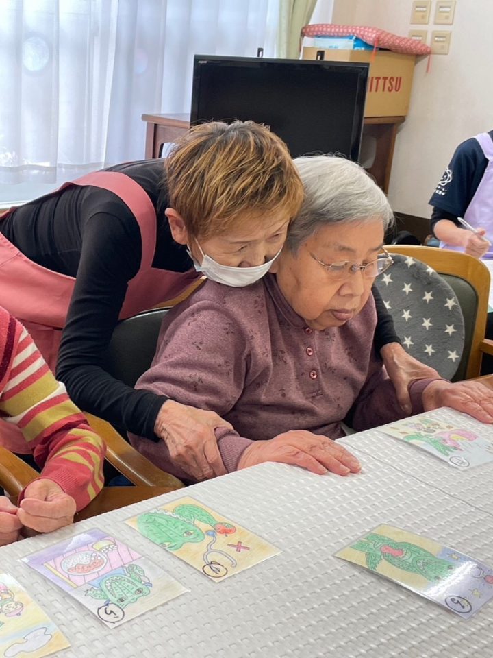 初詣に出かけたり、福笑いをしたり、書き初めをしたり、いきいきで作ったカルタを使ってカルタをしたりと、笑顔いっぱいに思う存分正月気分を味わって頂きました。
