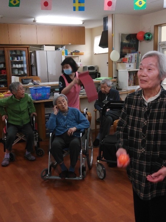 1回目の時同様、いきいきの皆んなにとっては懐かしく、子供達にとっては珍しい遊びに、老いも若きも笑顔いっぱい楽しんでおられました。