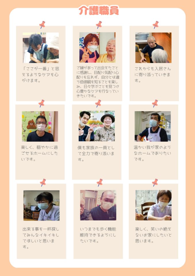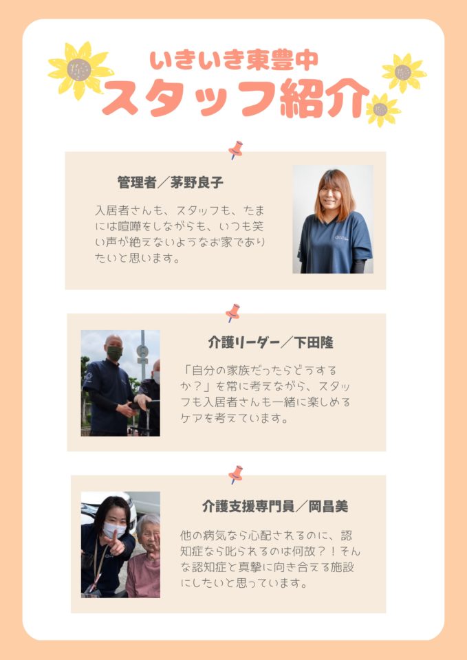 ホーム > 入居者のサポーター 入居者のサポーター スタッフを紹介します 当グループホームのスタッフは、認知症を持ちながら、みんなで暮らす人たちの笑顔を惹きだすサポーター。入居者のみなさんと共に、いきいき過ごせる大きな家族を目指しています。